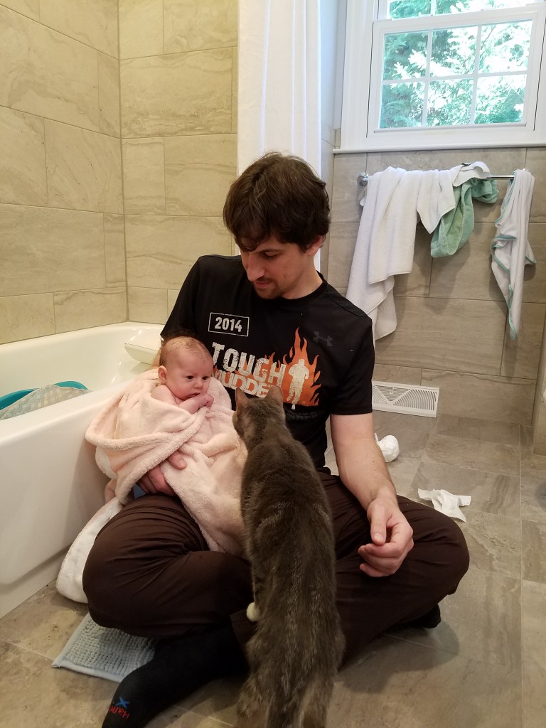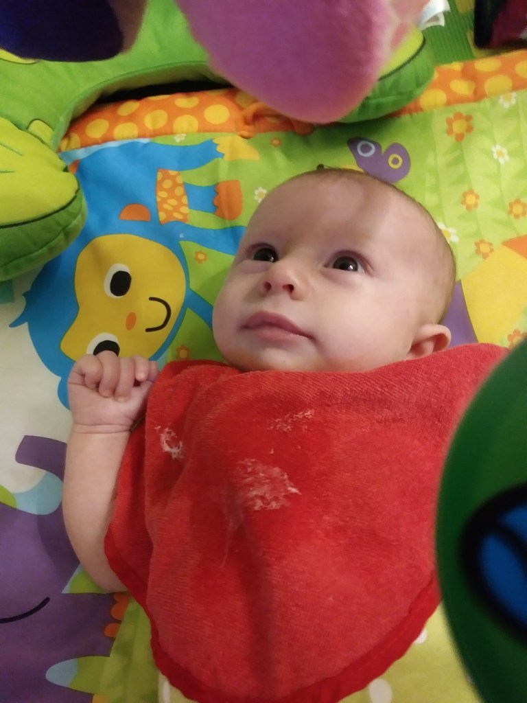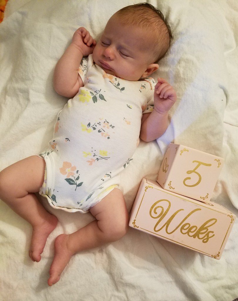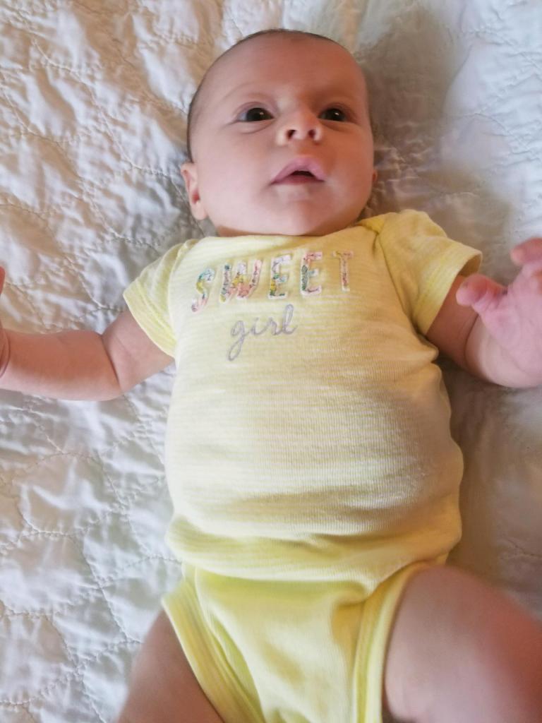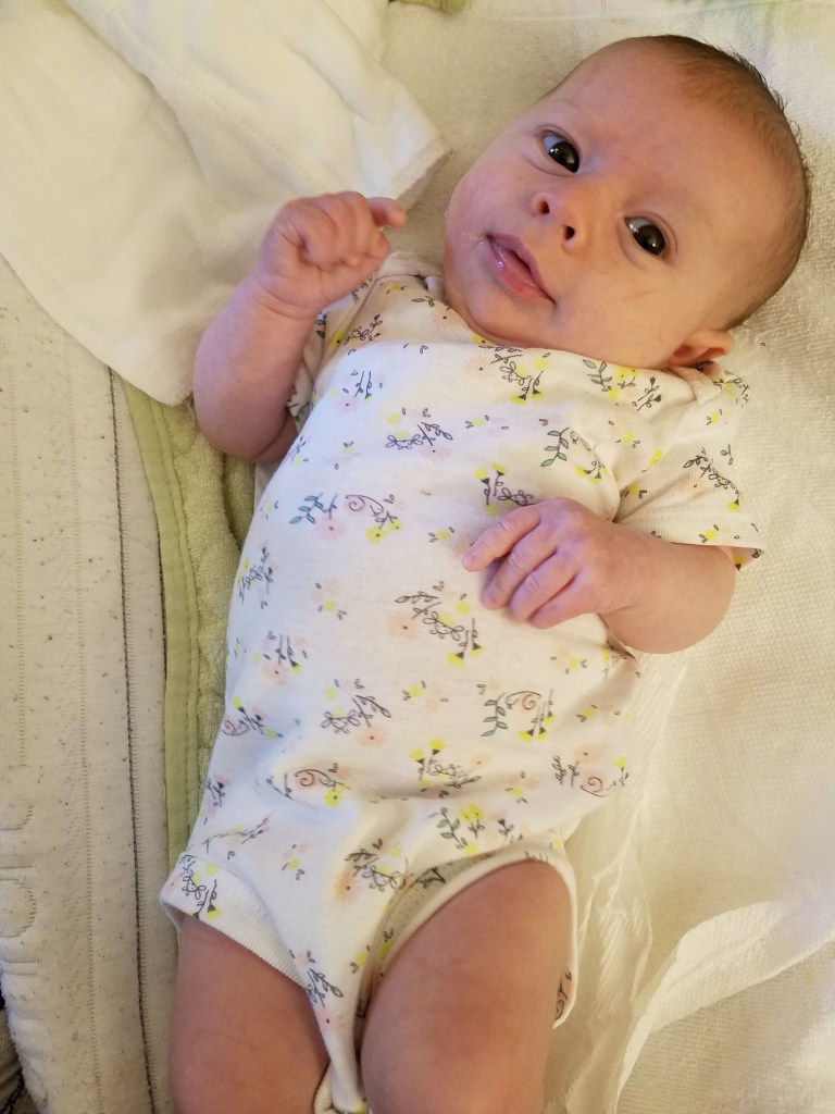 Jane turns two months! Some big milestones this month are first smiles and holding her head up. She loves kicking and looking around, especially at other babies. Also this month we had more visits with Cici, Grandma Kathy, Aunt Liz, and Aunt Kaitlin.